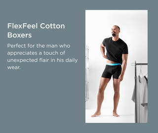 FlexFeel | 10-Pack Black Cotton Boxer Briefs with Light Blue Waistband
