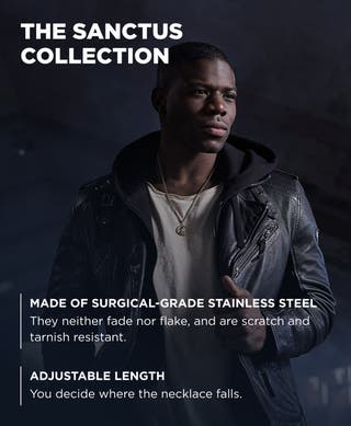 This pendant necklace for men is made of surgical-grade stainless steel. Its double curb chain means that if one link fails, the next will catch it. An easy-to-use lobster clasp and its adjustable length give you power over where the pendant falls.